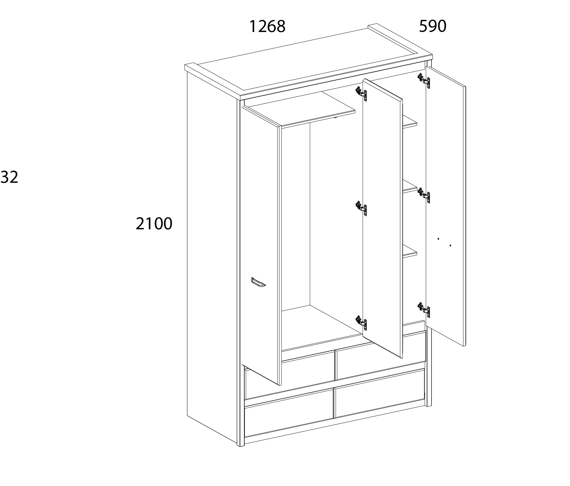 Материал: ЛДСП - 16 мм, ЛДСП - 32 мм (плита с утолщением – боковые панели корпуса, верхние щиты).