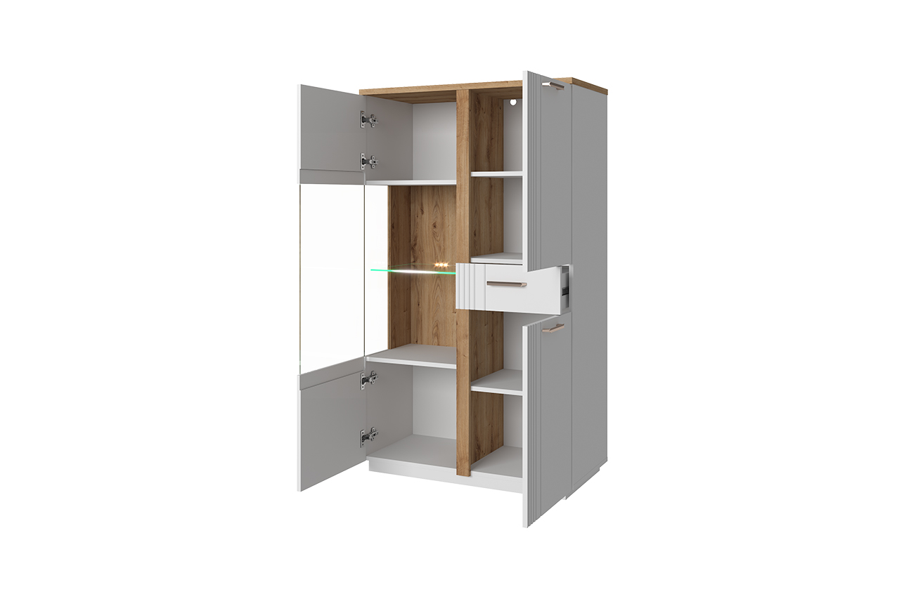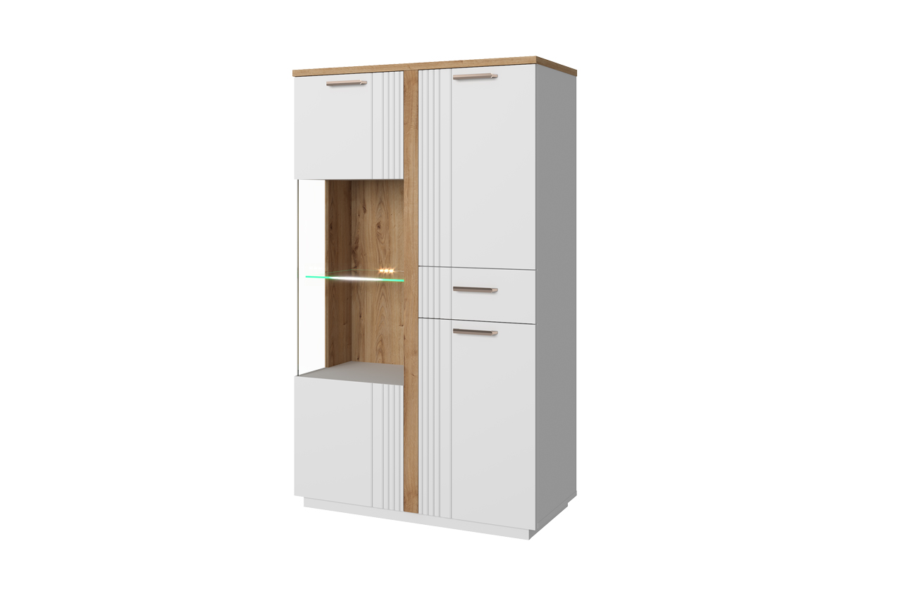Шкаф с витриной 1V2D1S P 86,2х40,2х147 Белый/Дуб Наварра