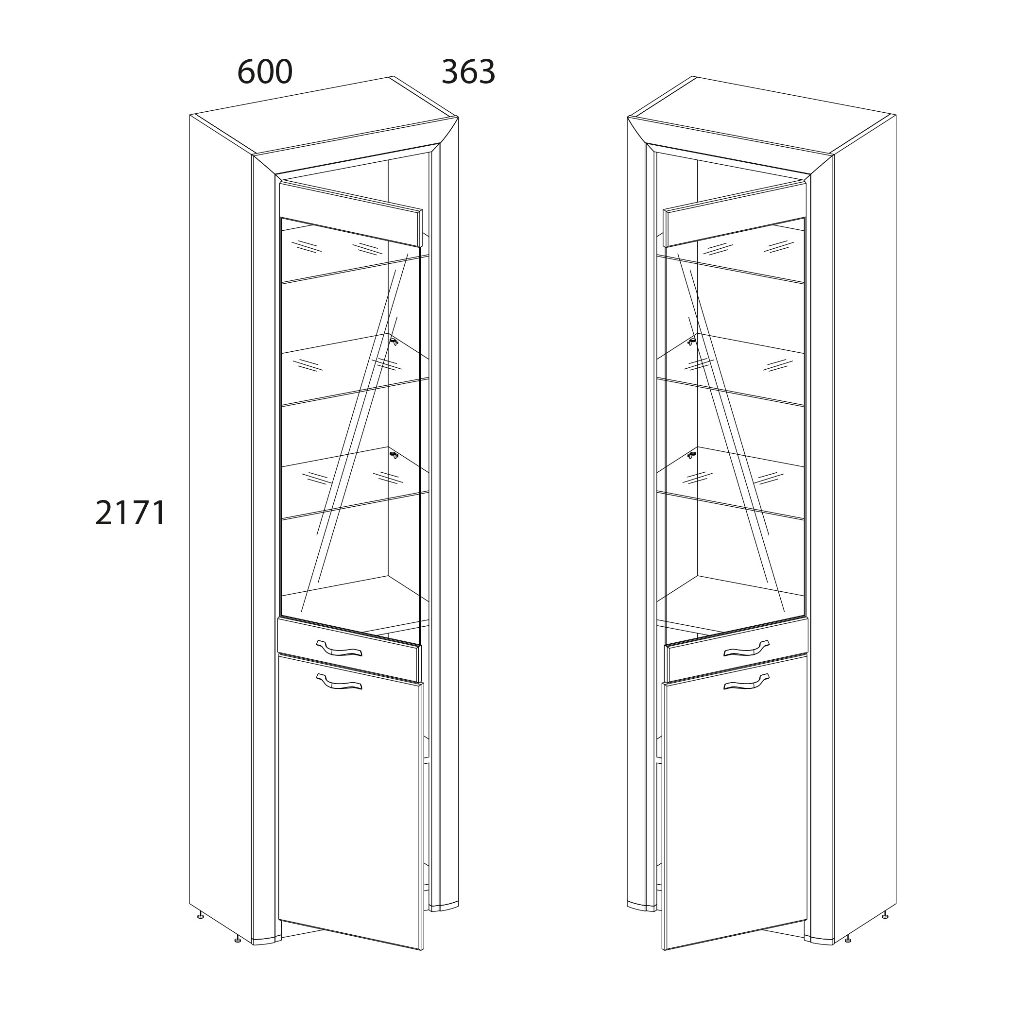 Шкаф-витрина 1V1D 60х36х217,1 Вудлайн кремовый/Дуб анкора