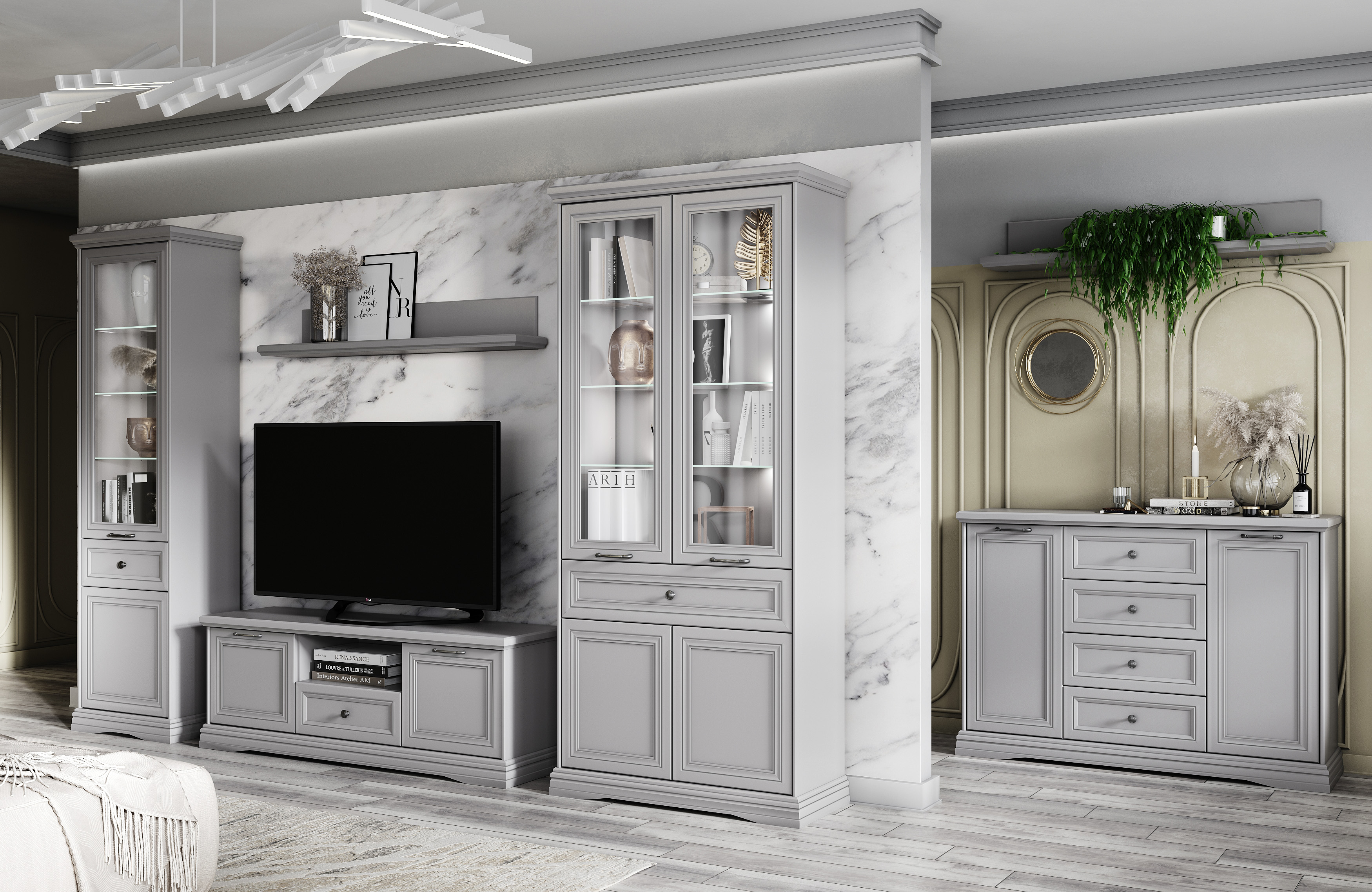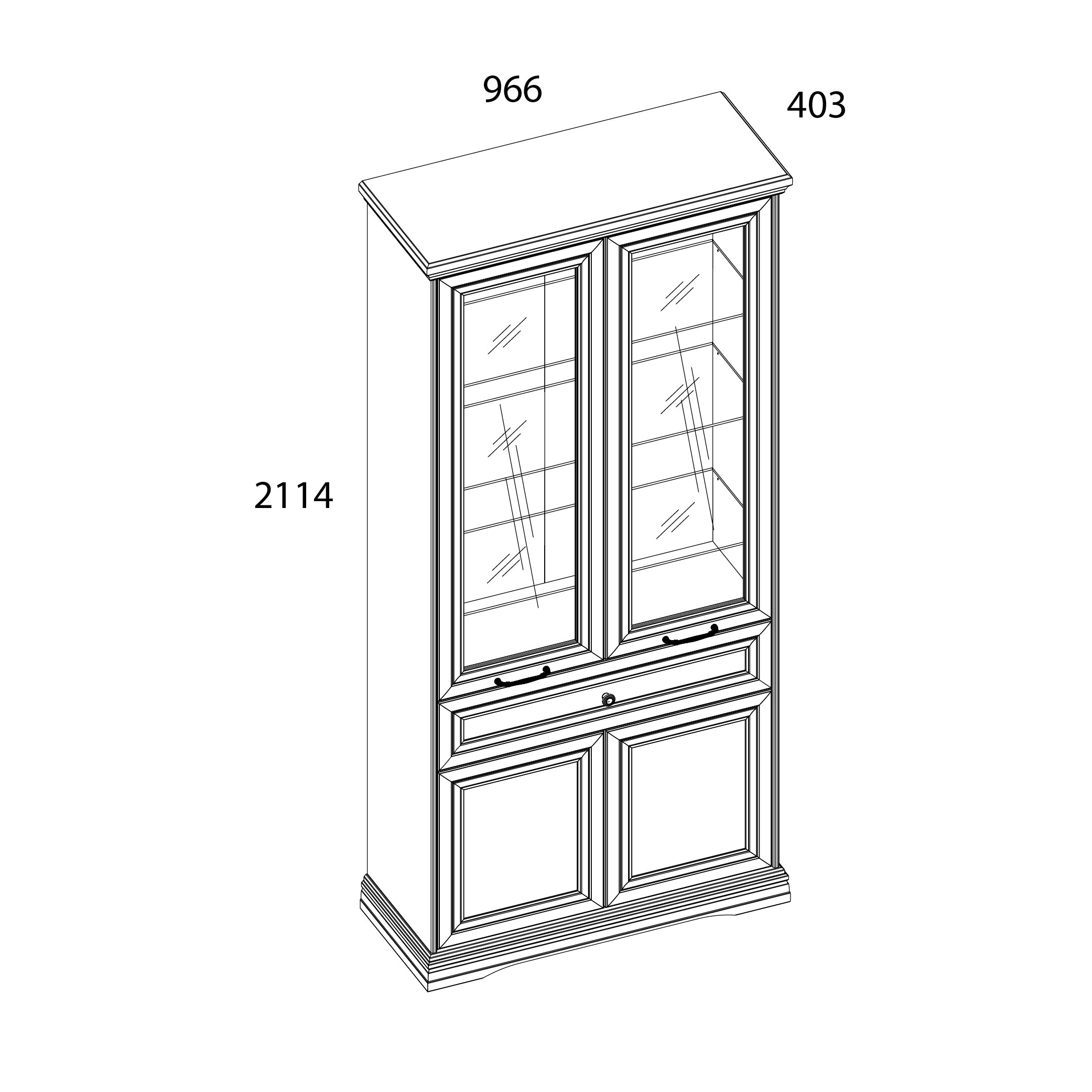 Шкаф с витриной 2V2D1S Н 96,6х40,3х211,4/Серый