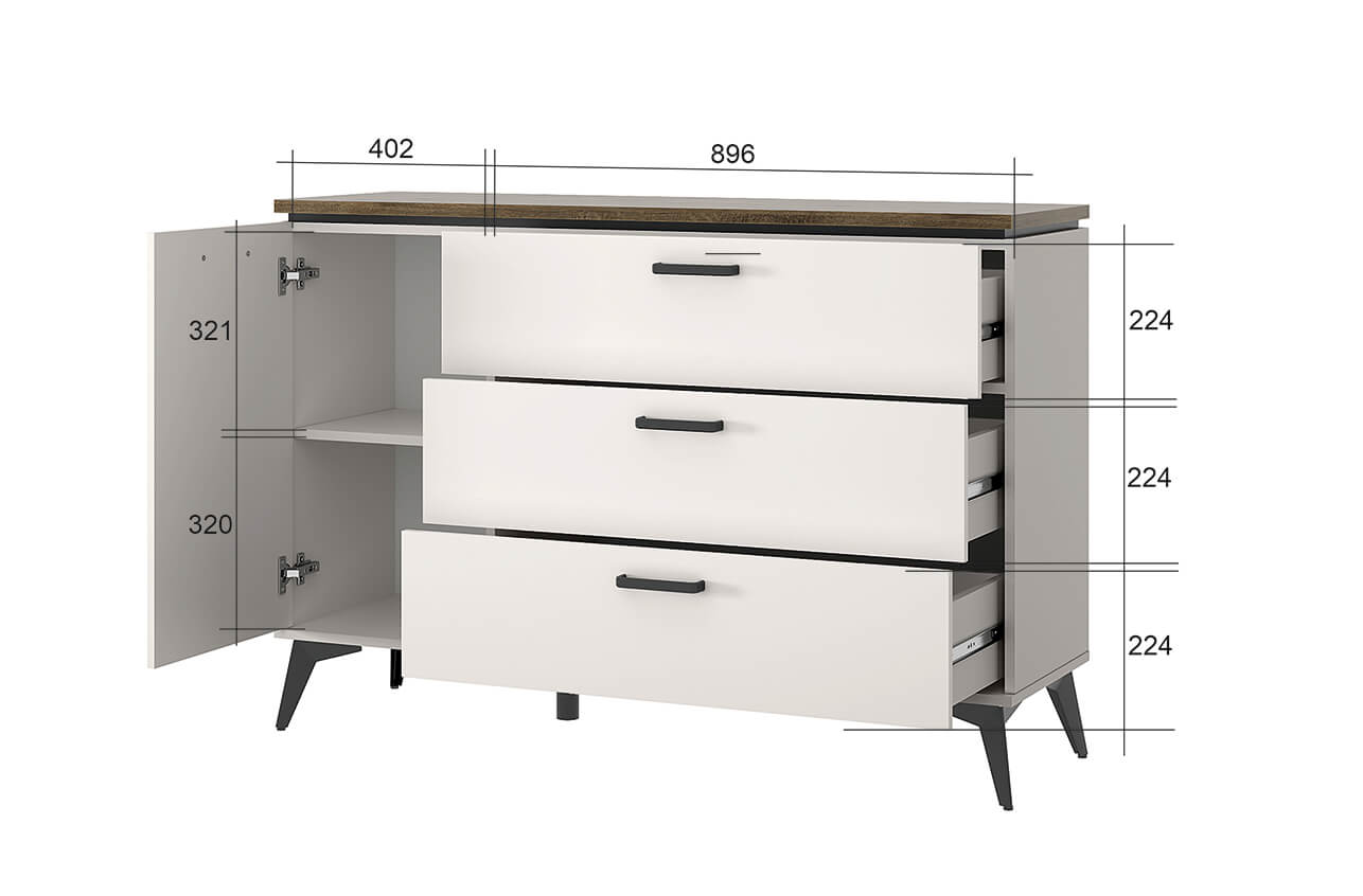 Материал: ЛДСП - 16 мм, ЛДСП - 22 мм (верхние щиты), ЛДСП – 16 мм (планки в меламиновой кромке), цвет – чёрный (матовый).