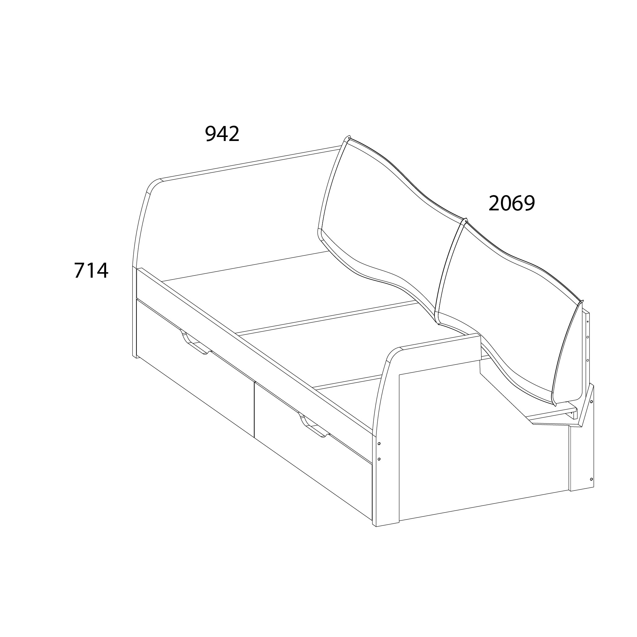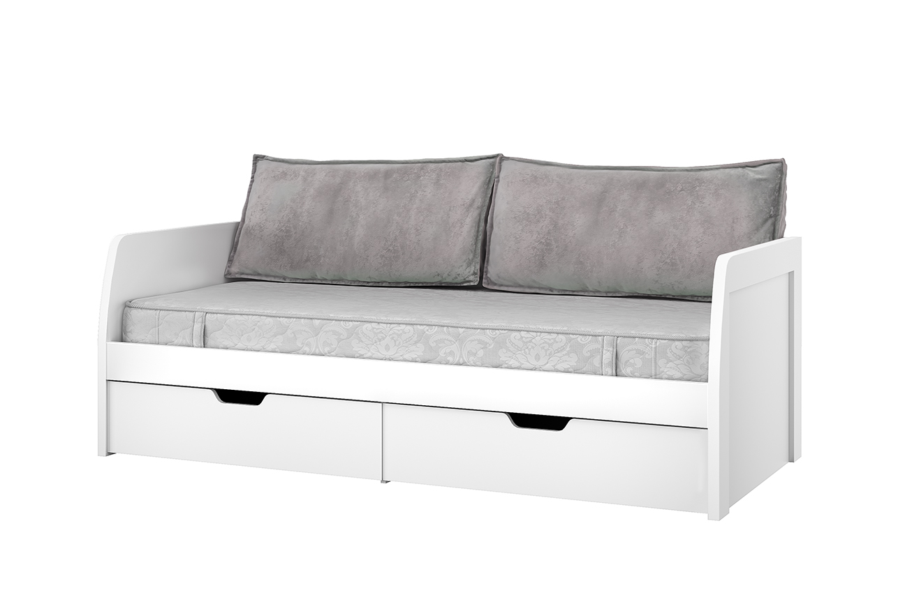 Кровать 2Я90 с 2-мя подушками 206,9х94,2х71,4 Белый/Дуб вотан