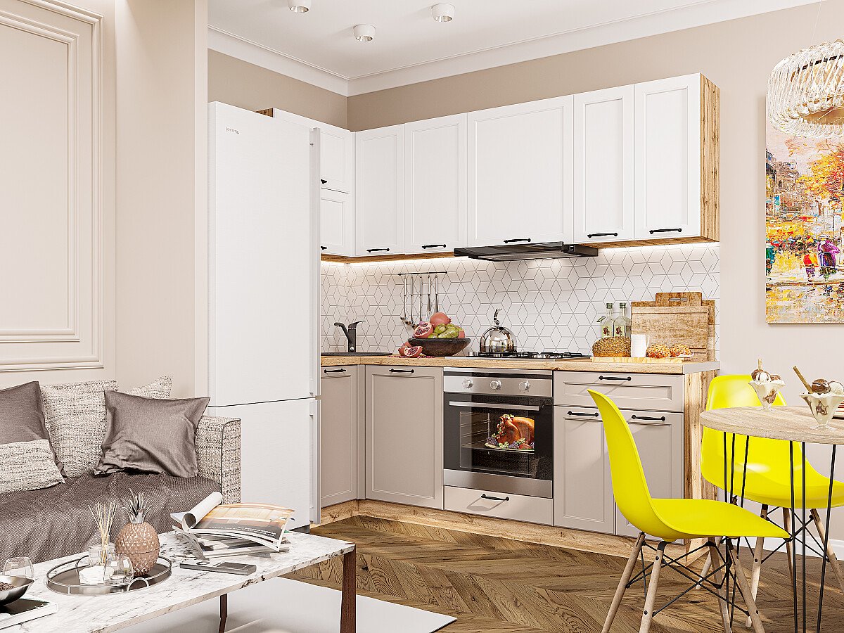 Кухонный гарнитур Барселона-04 95/220х60х214 Белый/Кашемир