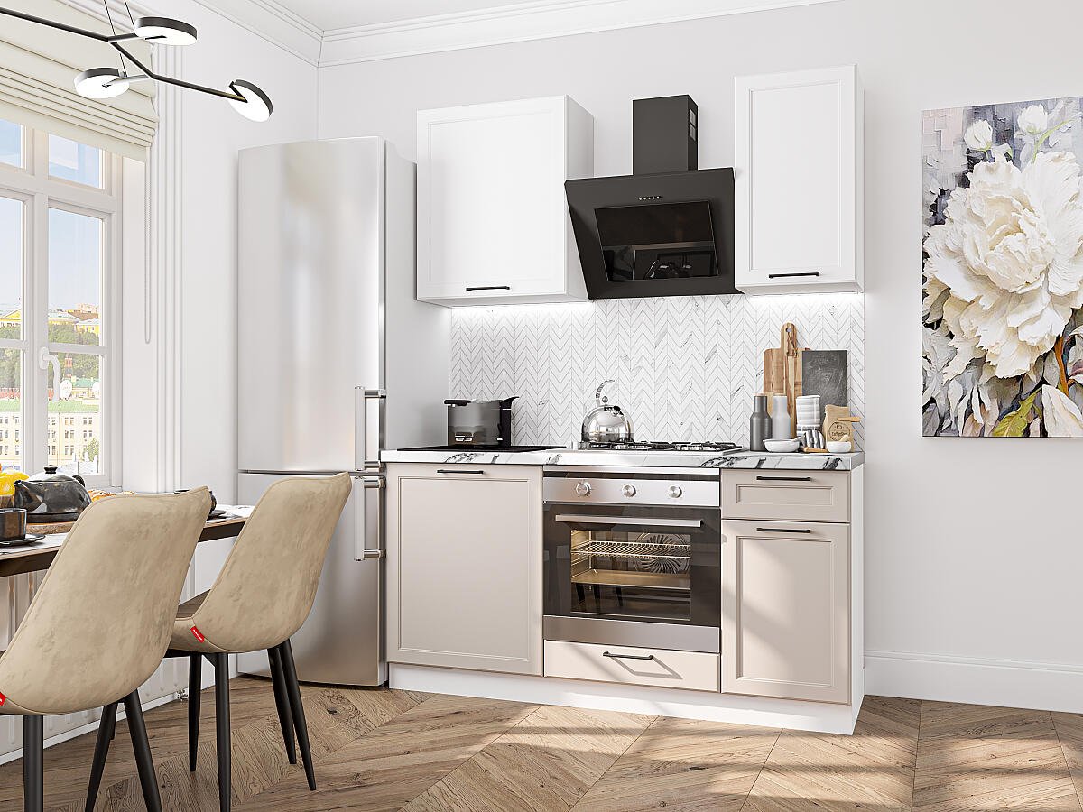 Кухонный гарнитур Барселона-06 160х60х214 Белый/Кашемир