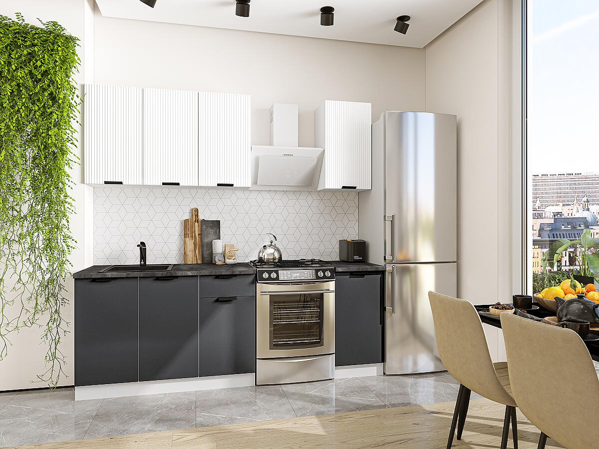 Кухонный гарнитур Евро Лайн-06 140х60х214/Белый/Антрацит