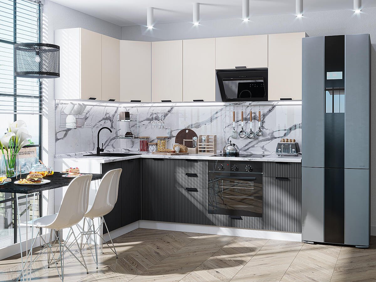 Кухонный гарнитур Евро Лайн-05 140/240х60х214/Агат/Антрацит