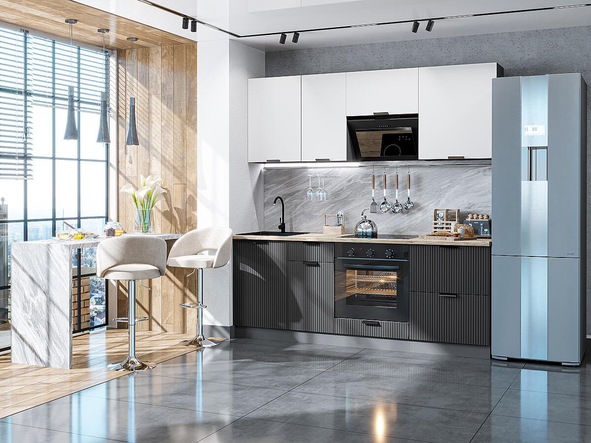 Кухонный гарнитур Евро Лайн-02 200х60х214/Белый/Антрацит