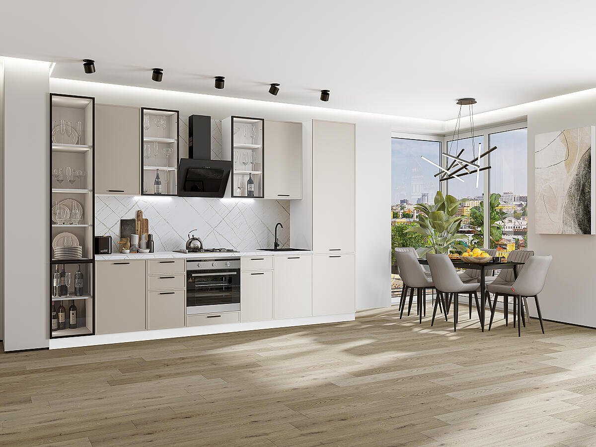 Кухонный гарнитур Фрейм-06 340х60х234/Cream Silk