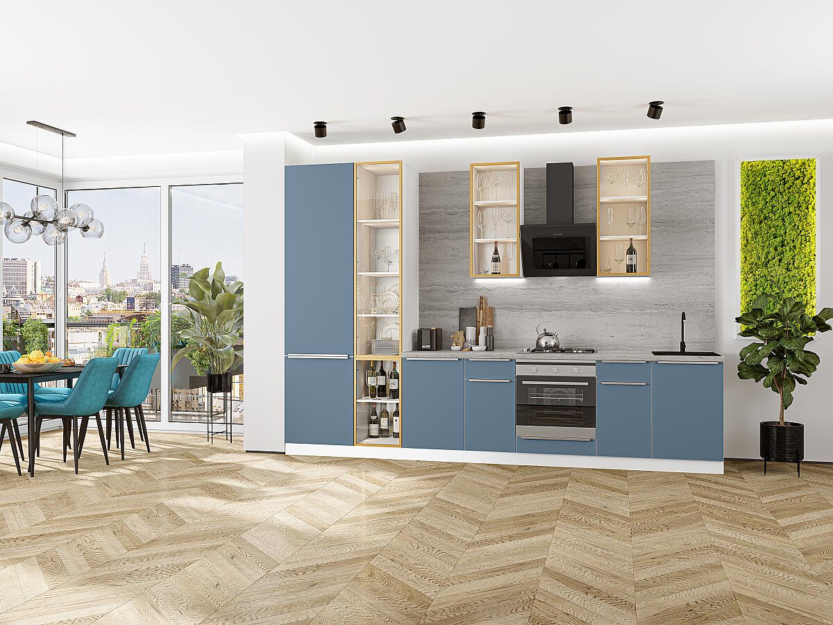 Кухонный гарнитур Фьюжн-08 340х60х234/Silky Blue