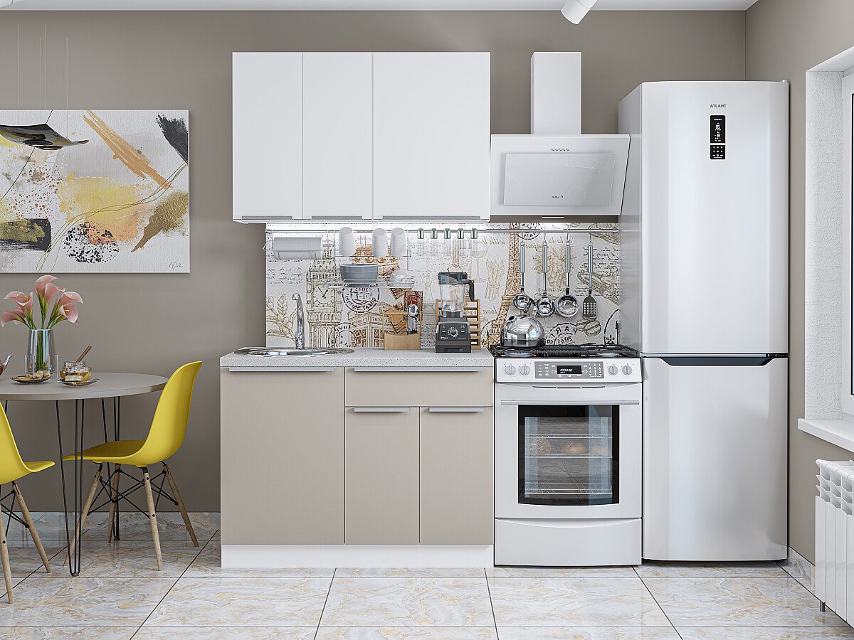 Кухонный гарнитур Фьюжн-05 110х60х214/Silky White/Silky Grey