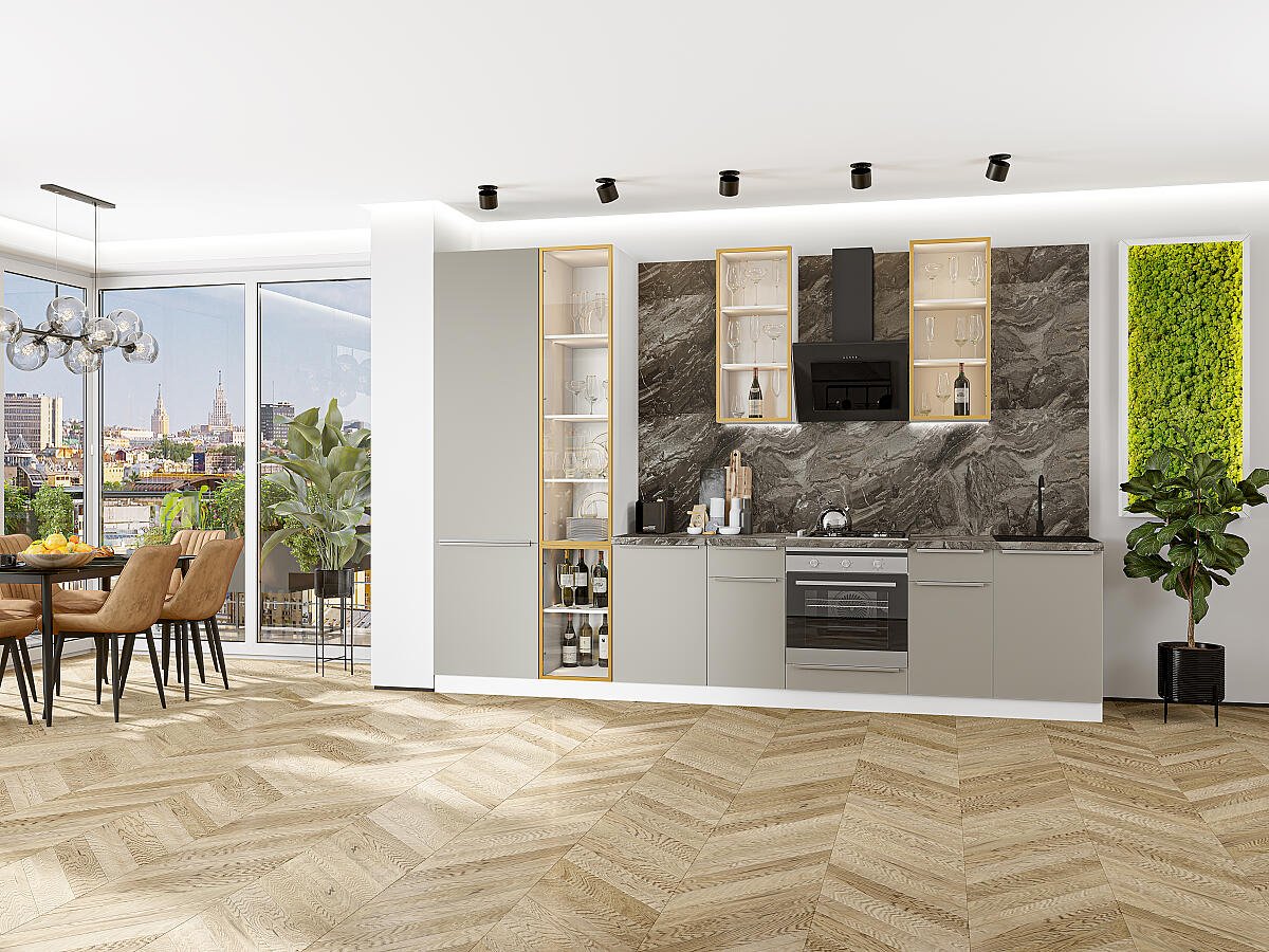 Кухонный гарнитур Фьюжн-08 340х60х234/Silky Grey