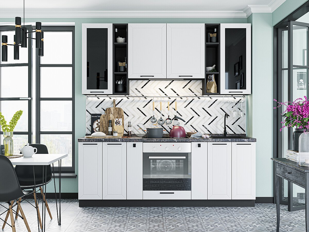 Шкаф верхний с 1-ой дверцей Глетчер - 2шт.; Столешница в комплекте 38 мм. Декор:Мрамор черный.