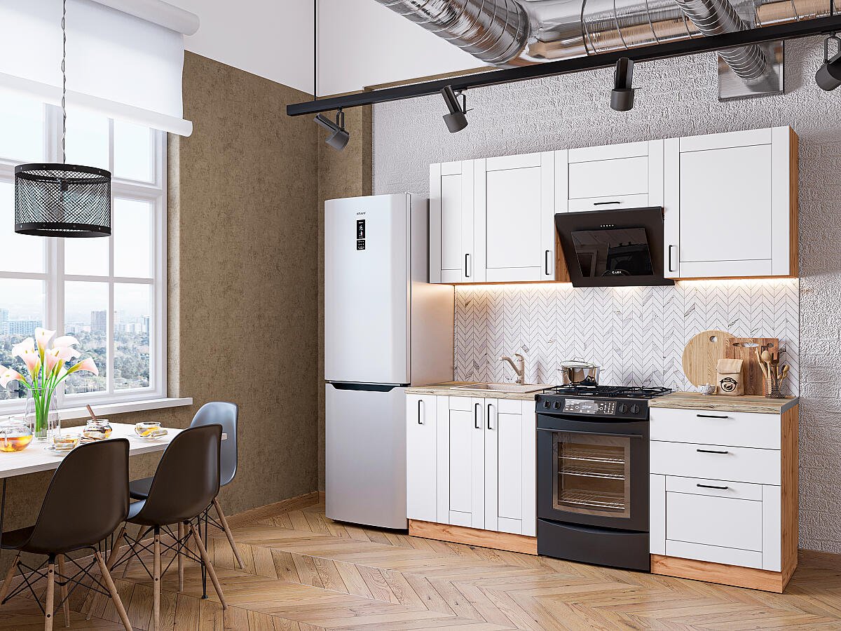 Кухонный гарнтитур Лофт-05 200х60х214/White Silk