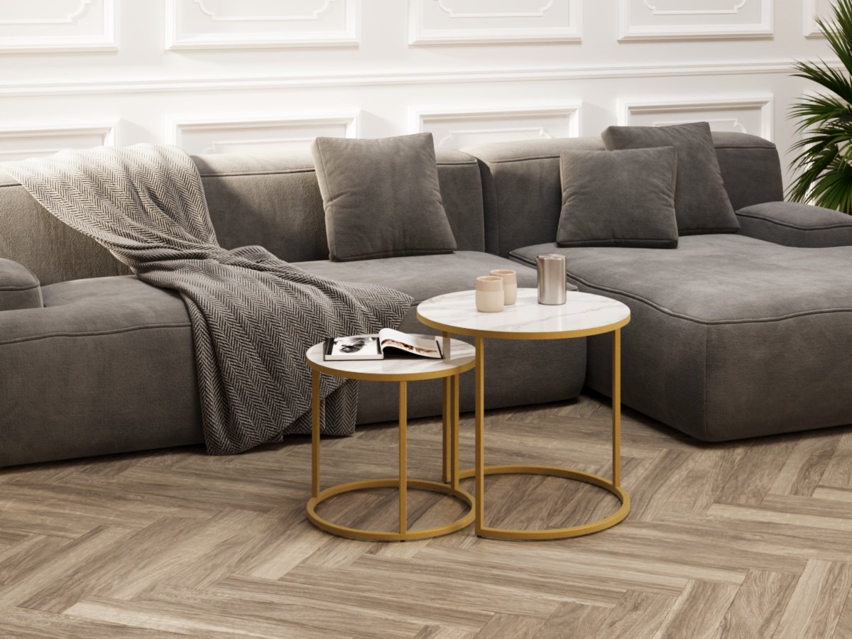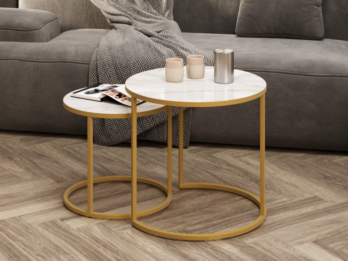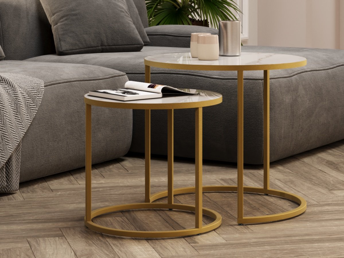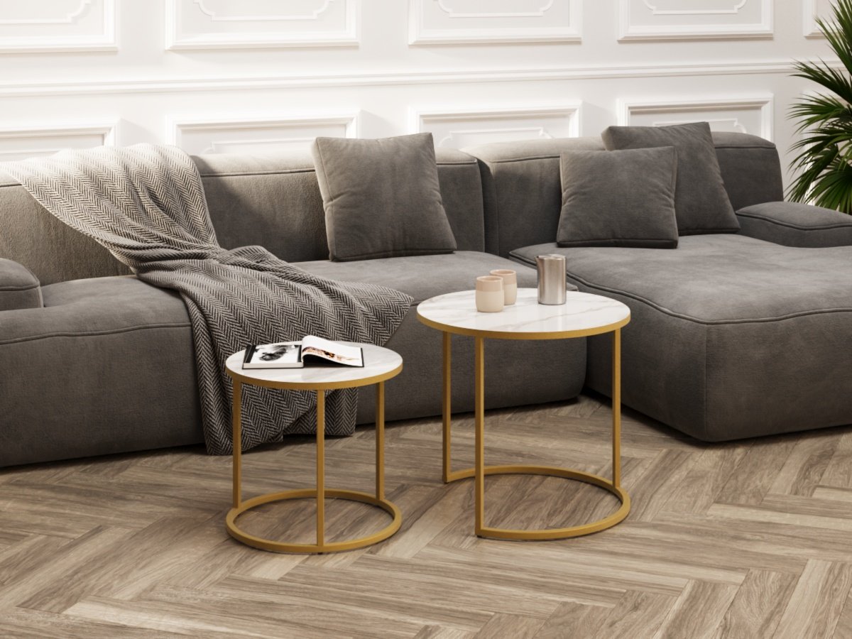 Стол журнальный Белый мрамор,золото,50х50х46,5см.