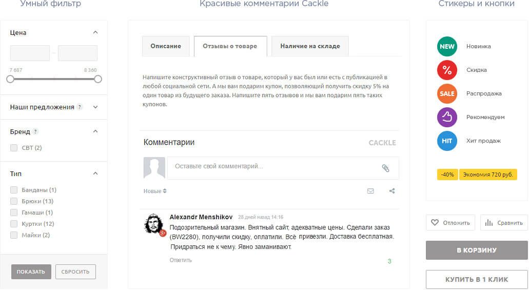- внедрили виджет сервиса Cackle в карточку товара – для красивых комментариев.