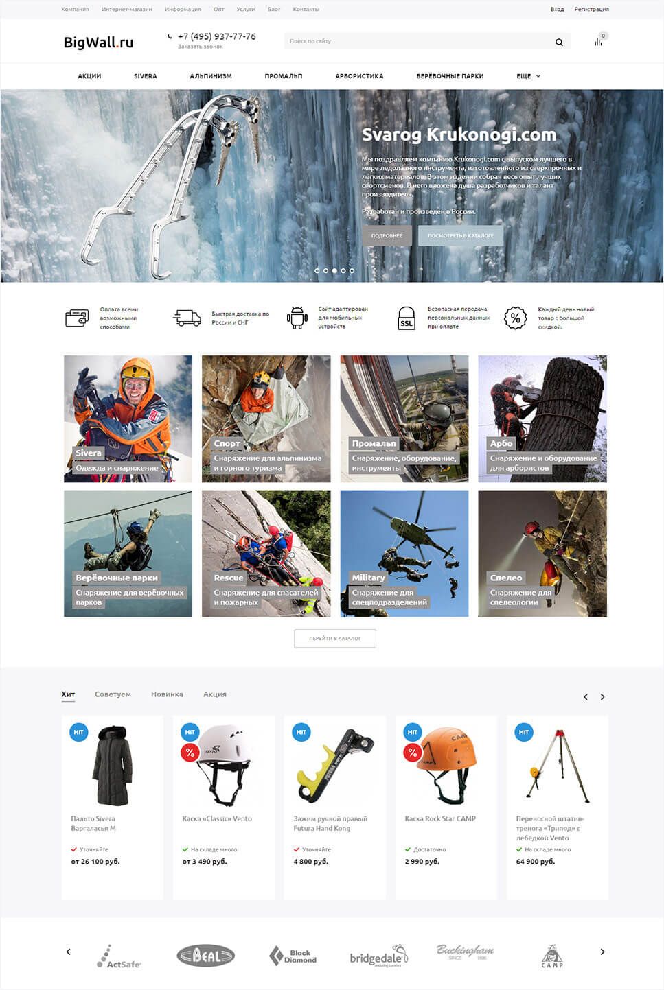 Перенесли интернет-магазин на современное решение Аспро: Маркет. BigWall – интернет-магазин снаряжения и одежды для спортивного и промышленного альпинизма, горного туризма, скалолазания и путешествий.