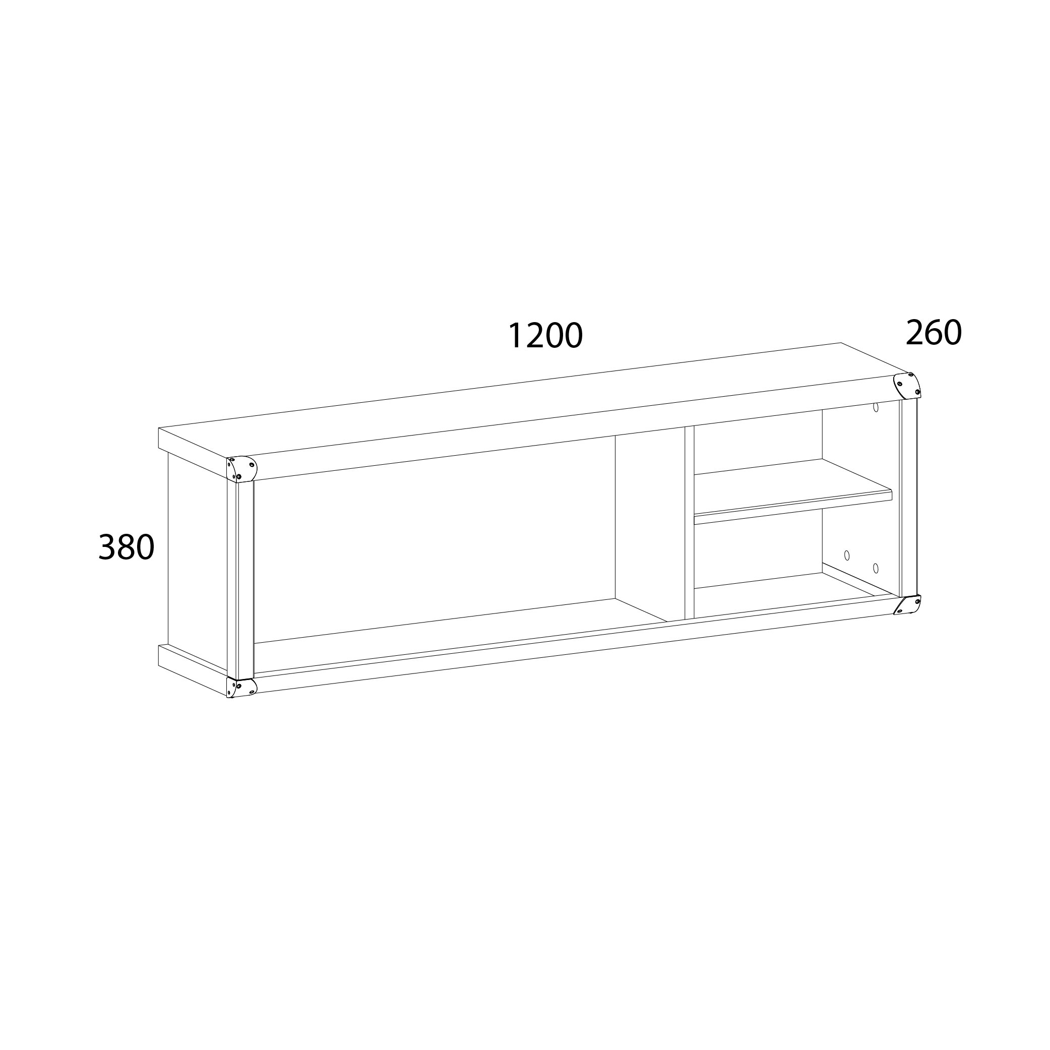 Полка навесная 3N 120х26х38/Сосна винтаж