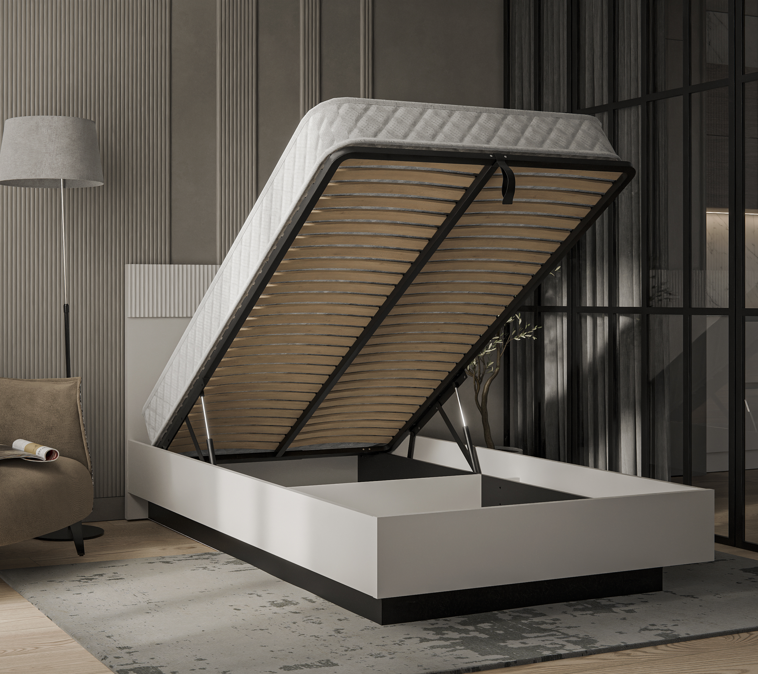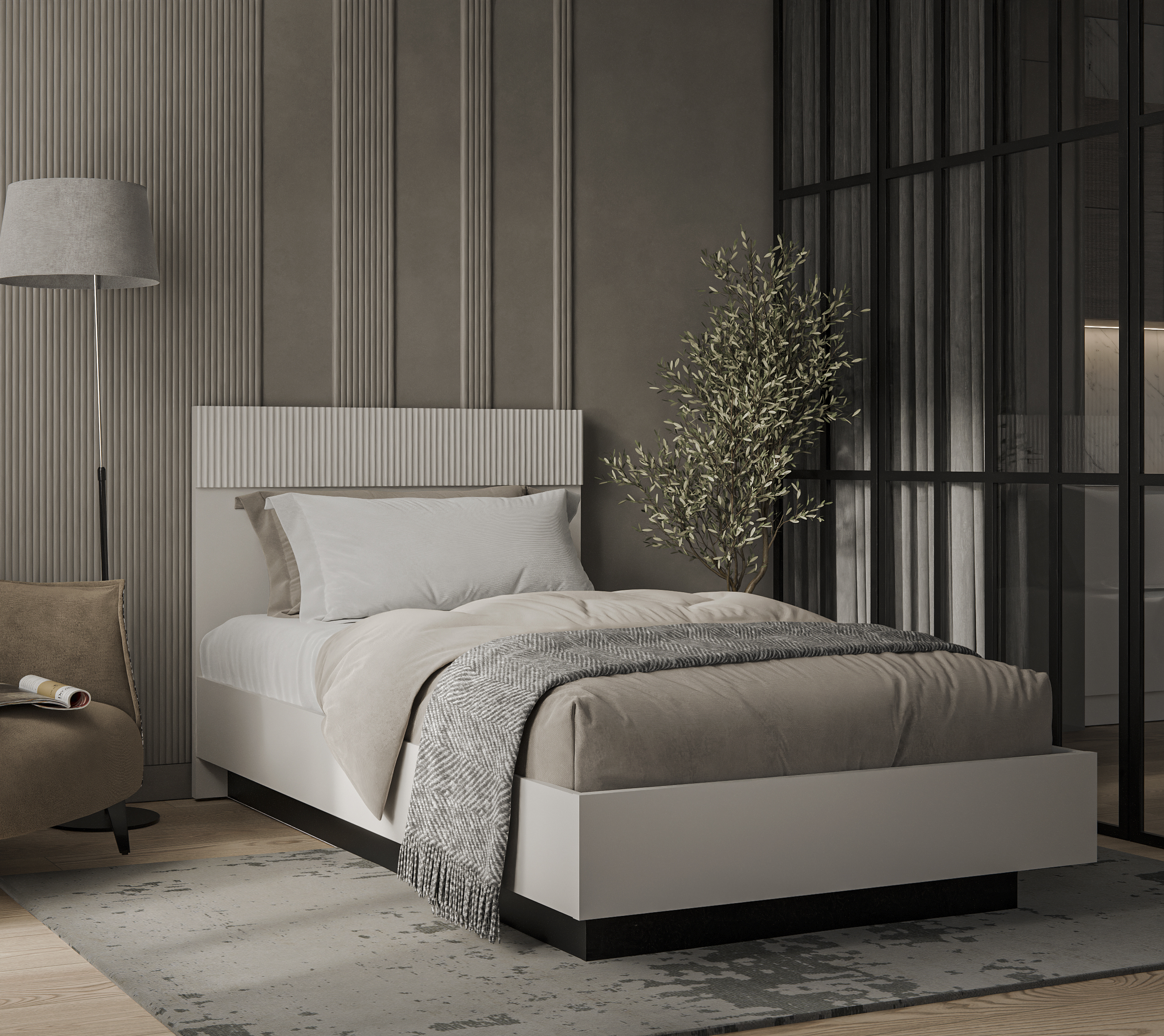 Материал: ЛДСП – 16 мм (корпус короба), ЛДСП – 22 мм (царги, изножье), ЛДСП – 32 мм (изголовье), МДФ – 16 мм (планка МДФ на изголовье).